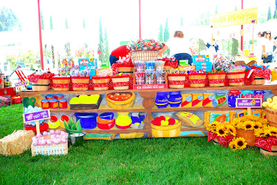 A colorful “shopping” experience awaits the lucky birthday party guests at this “On the Farm” themed party