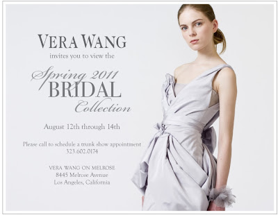 Vera Wang recently opened a gorgeous boutique on Melrose Avenue. They are having a wonderful trunk show of their 2011 collection – August 12 – 14. You can now now to schedule an appointment.