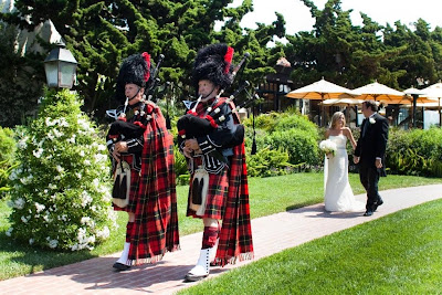 The afternoon began with the groom riding in a car (no, not an elephant) decorated with flowers down Ocean Avenue. The guests marched around Santa Monica with a drummer in tow. He then met his bride in a ceremonious exchange. There were two separate marriage ceremonies.