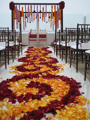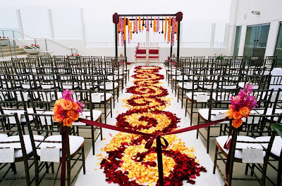 Welcome! I am excited to write my first blog. Here is a photo from the last wedding I coordinated. It was a lovely Indian wedding on a rooftop in Santa Monica overlooking the sea. Guests were wowed by vibrant colors in this elaborate aisle.