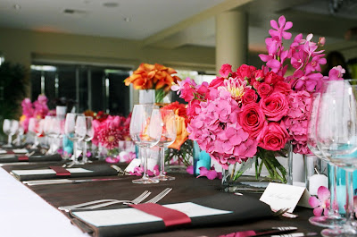The top photo is a luncheon at the Beverly Hills home of a wonderful client of mine. I have been planning her family weddings and parties for twelve years. She wanted lots of vibrant color – it was dramatic but still tasteful and warm. The Hidden Garden – did an amazing job (as always) with the flowers.