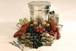 The Clambake from “The Lobster Place” comes with a Maine lobster, Prince Edward Mussels, steamers, little neck clams, new potatoes and corn. Even crackers and bibs are included to take home.