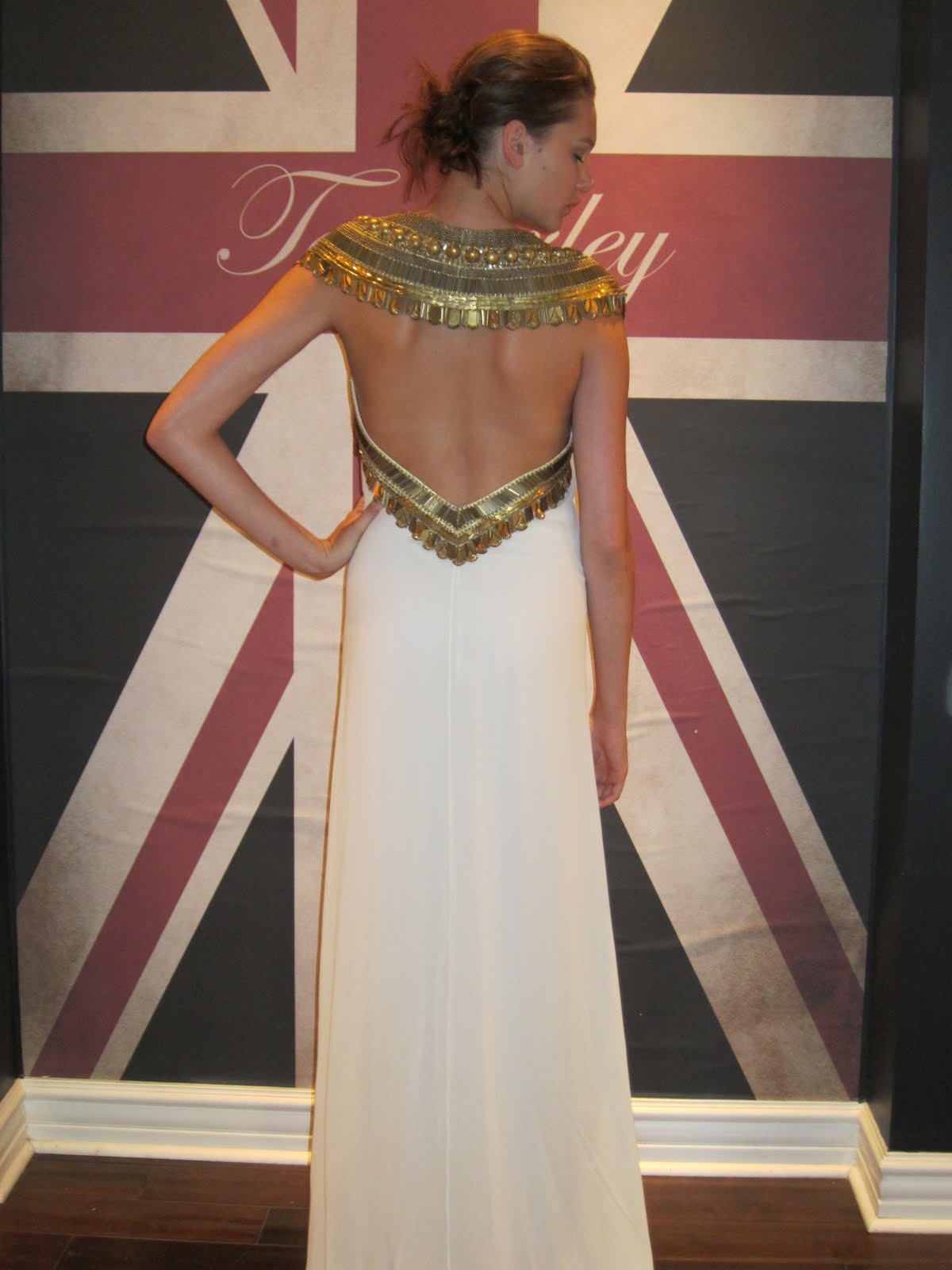 This Egyptian inspired Gown features a back that is quite dramatic.